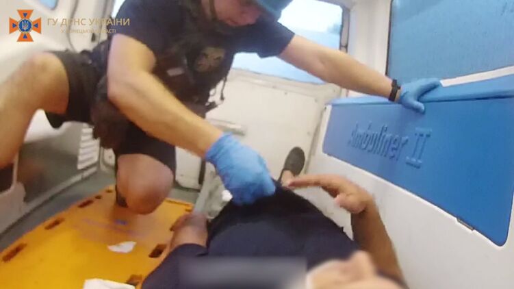 На автомобиле скорой помощи спасателя доставили в медучреждение, в настоящее время за его жизнь борются врачи.