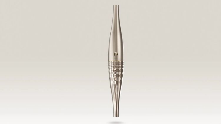 Стальной факел цвета шампань весит 1,5 кг. Визуально он разделен на две половины: матовую верхнюю и блестящую нижнюю с волнистой текстурой. На верхней половине расположен символ Олимпийских и Паралимпийских игр в Париже. Нижняя часть факела символизирует воду, так как Франция планирует пронести олимпийское пламя через все заморские территории. Помимо этого, церемония открытия будет проводить в водах реки Сены.