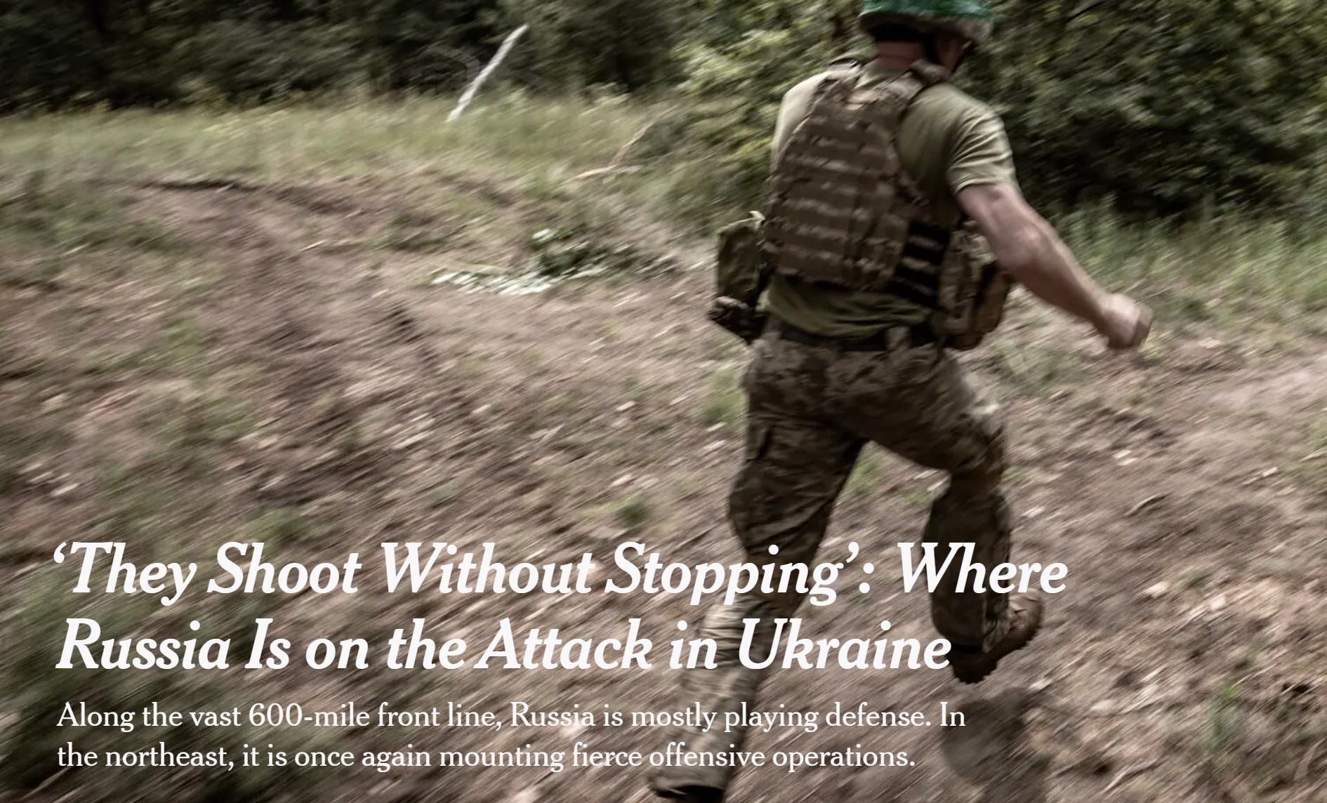 В статье говорится, что на северо-востоке РФ ведет "устойчивые наступательные операции" и "стреляет без остановки" - подчас втрое интенсивнее, чем украинские подразделения. Военврачи говорят о резком росте раненых на этом участке, хотя раньше их там было мало.