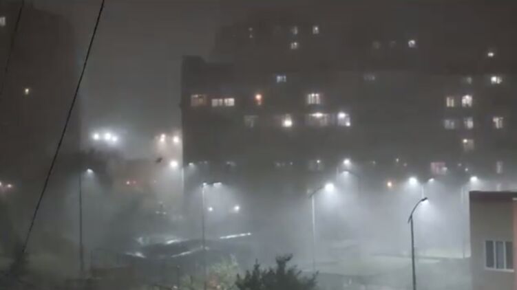 Отмечается, что с домов срывает покрытие крыш, а на улицах начался потоп. Также на видео можно заметить, что вода добралась и до подъездов жилых домов.