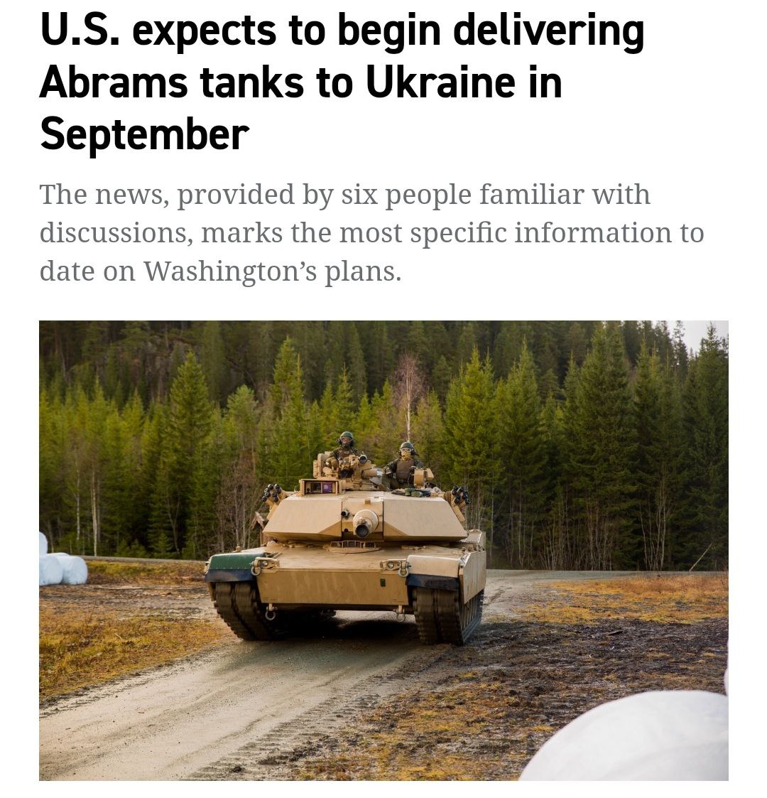 Первоначальная партия будет состоять из шести-восьми танков, сказал представитель отрасли и помощник конгрессмена. Всего США планируют отправить 31 танк, что соответствует украинскому батальону.