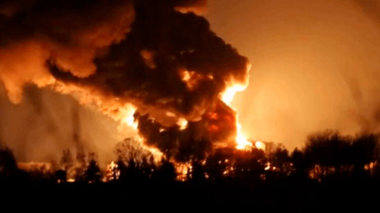 В Шахтерске (неподконтрольная часть Донецкой области) после ночного прилета сильный пожар.