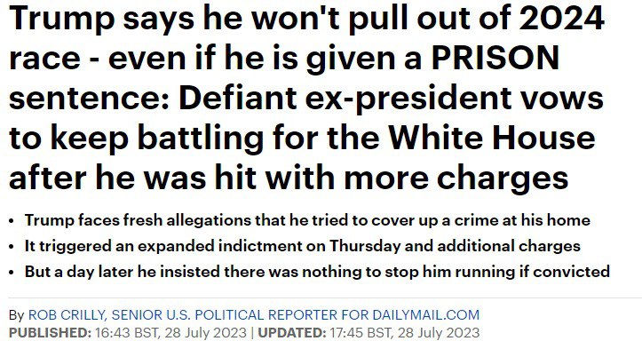 Экс-президент США Дональд Трамп не перестанет бороться за президентский пост, даже если ему вынесут обвинительный приговор.