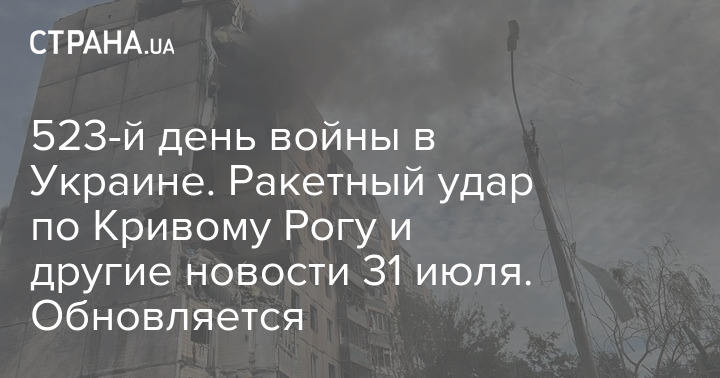 В понедельник, 31 июля, в Украине идет 523-й день войны с Россией.