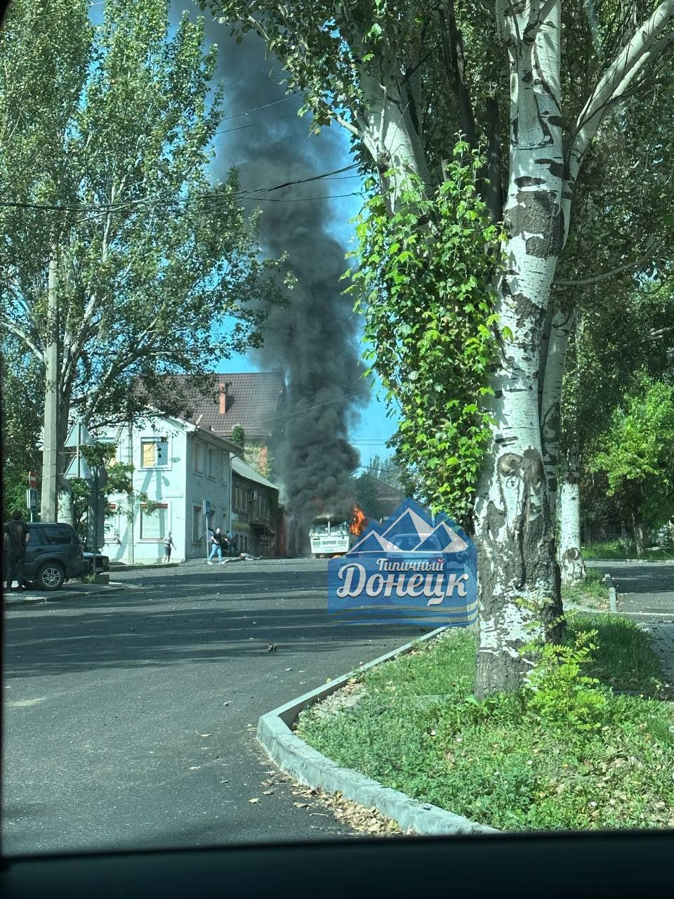 На опубликованных в пабликах фото виден горящий автобус.