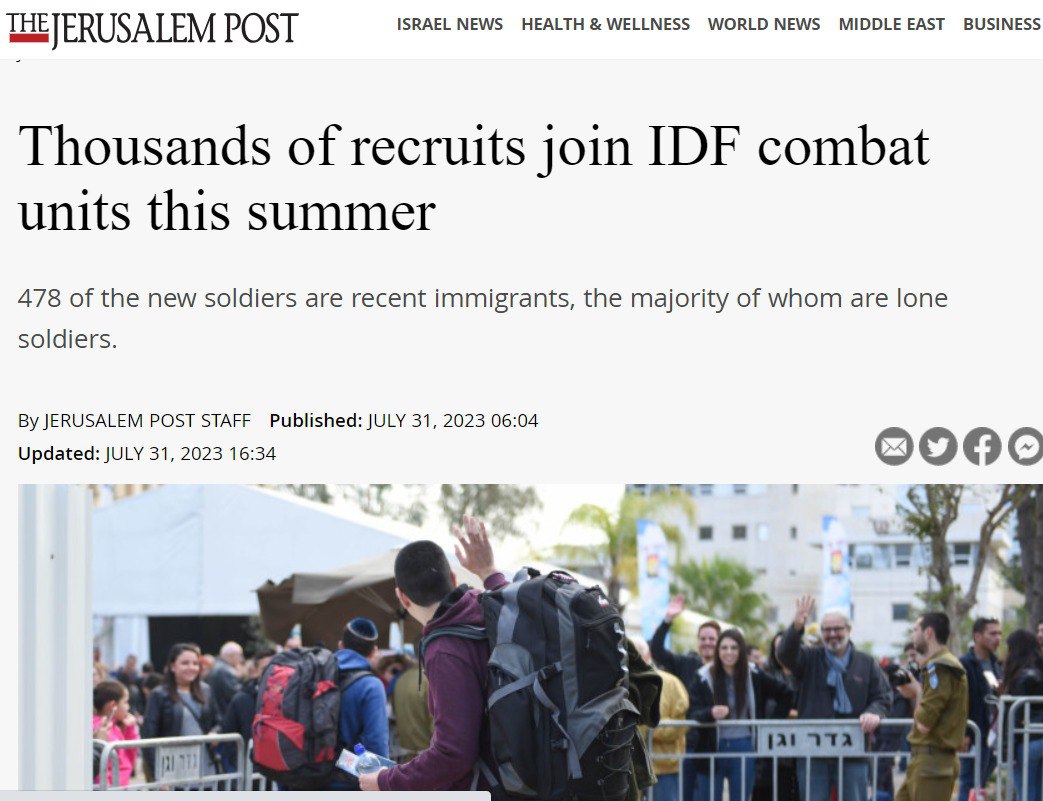 Согласно статистике, которую привела газета, в ряды вооруженных сил уже призваны 478 новых репатриантов. Среди них 313 мужчин и 165 женщин, при этом большинство из них родом из России.