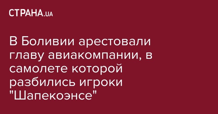 В Боливии арестовали главу авиакомпании, в самолете которой разбились игроки "Шапекоэнсе"