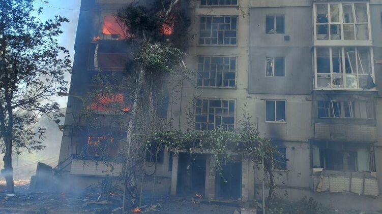 В Орехове на Запорожском направлении от обстрела загорелась девятиэтажка.