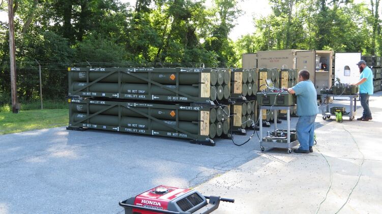 Контейнер с ракетами GMLRS в центре тестирования вооружений Letterkenny, США