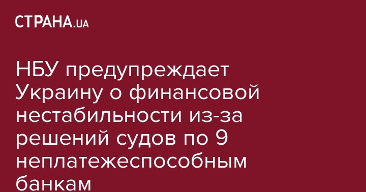 В НБУ  заявили о возникновениие системных рисков для финансовой стабильности путем  из-за принятия судами неправосудных решений по восстановлению деятельности девяти банков,  у которых уже отзываны банковские лицензии.