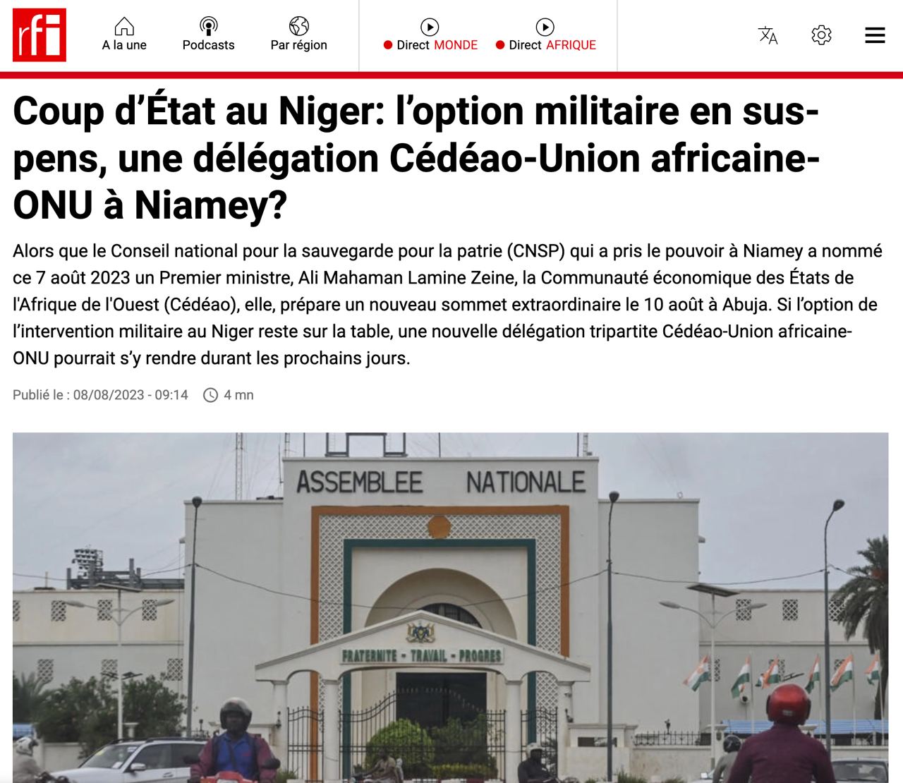 На переговоры с путчистами в Нигер отправятся представители Африканского союза, ЭКОВАС и ООН.