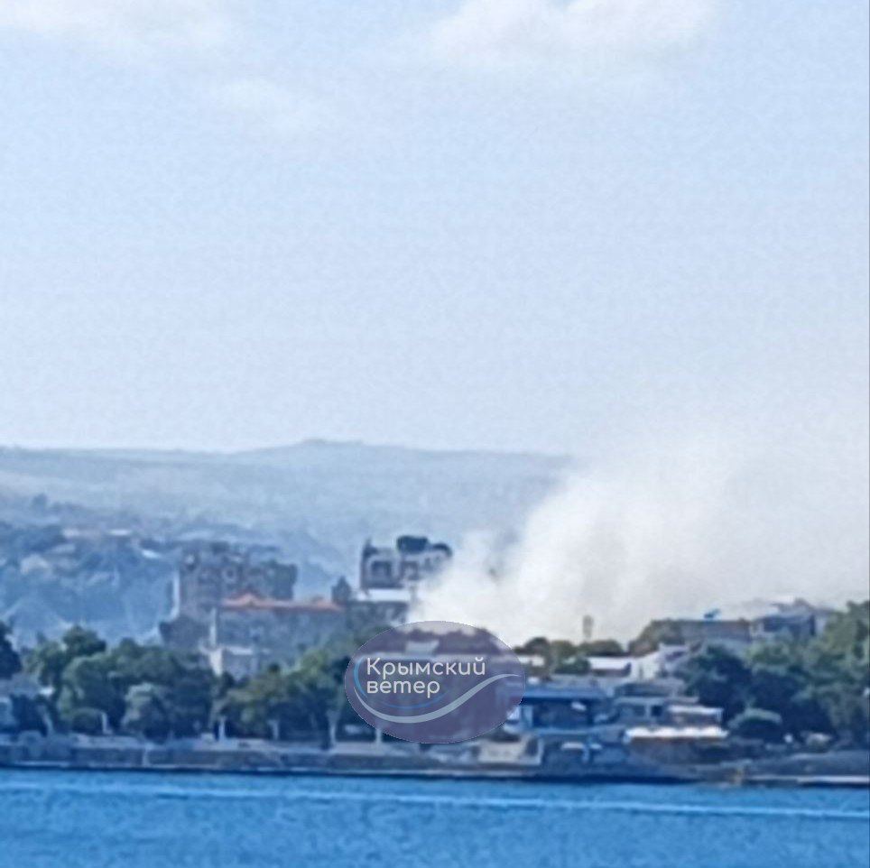 Севастопольскую бухту окутал дым, свидетельствуют фото местных пабликов.