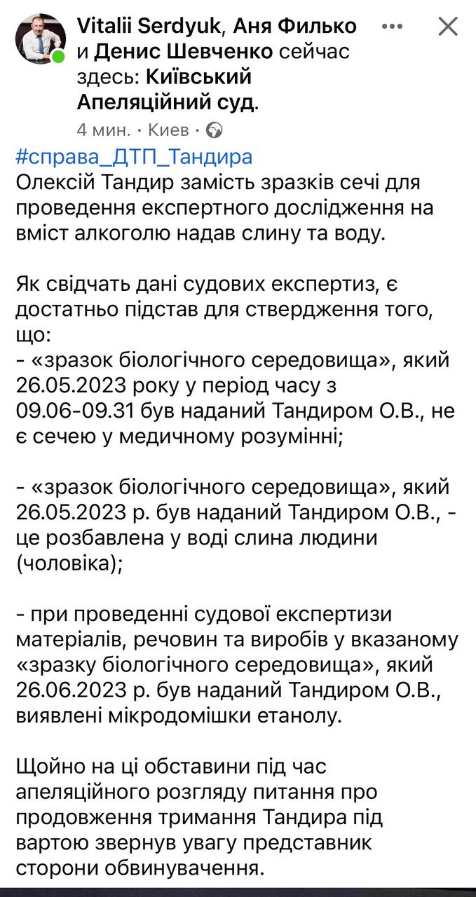 Судья Алексей Тандыр, подозреваемый в совершении пьяного ДТП с летальным исходом, для экспертизы на алкоголь вместо образцов мочи предоставил слюну и воду.