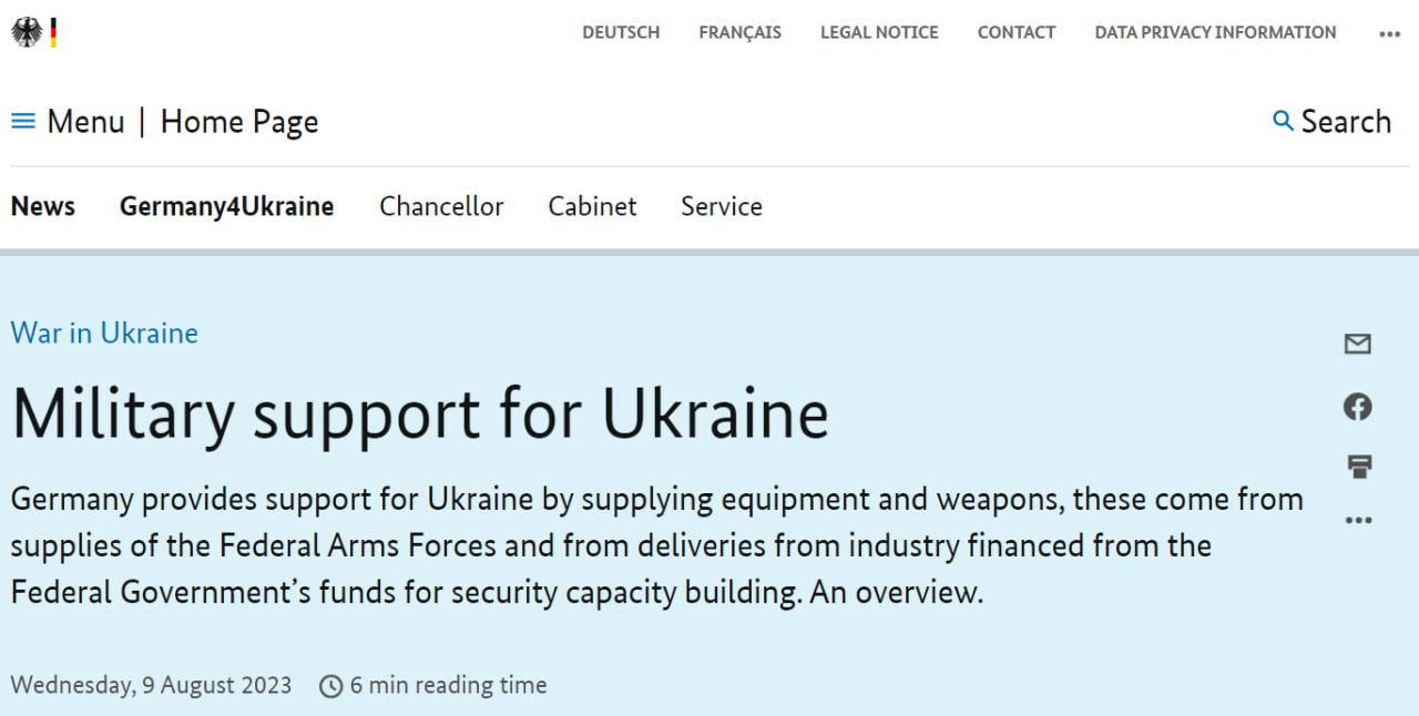 В правительстве отметили, что часть вооружения, передаваемого Украине, поставляется со складов Вооруженных сил страны, а другая часть – от промышленности, которая финансируется за счет программ федерального правительства.