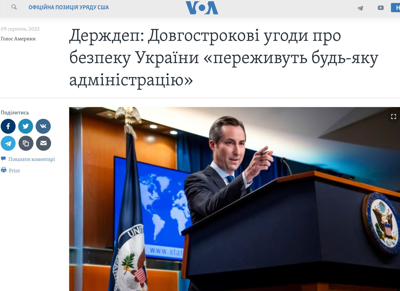 В Госдепе заверяют, что гарантии безопасности США для Украины будут актуальны независимо от результата американских выборов.