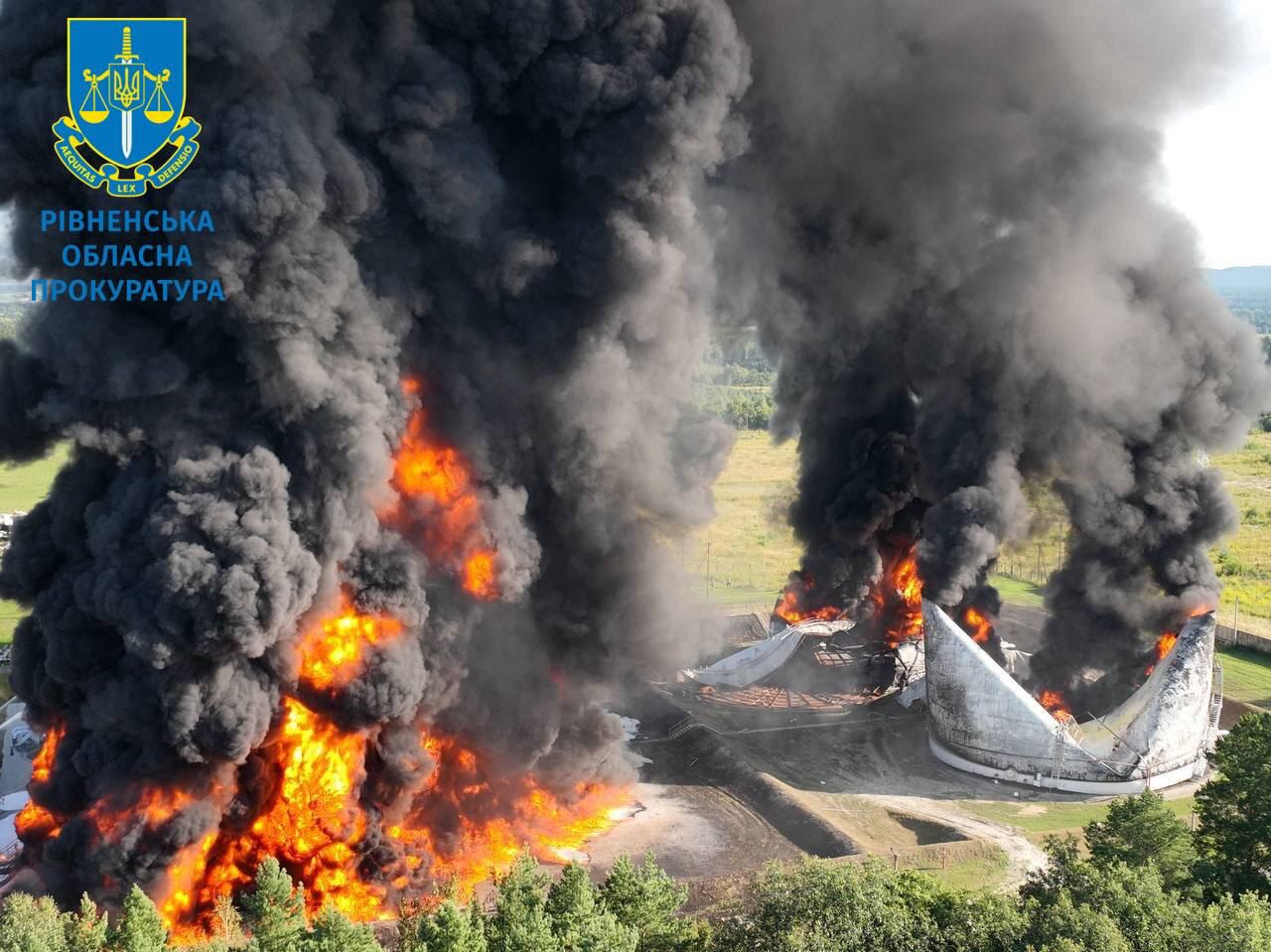 В настоящее время прокуроры документируют последствия обстрела нефтебазы в Ровенской области, начато досудебное расследование по факту нарушения законов и обычаев войны (ч. 1 ст. 438 УК Украины).