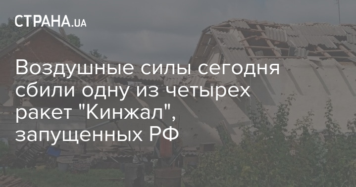 Воздушные силы сегодня сбили одну из четырех ракет "Кинжал", запущенных РФ