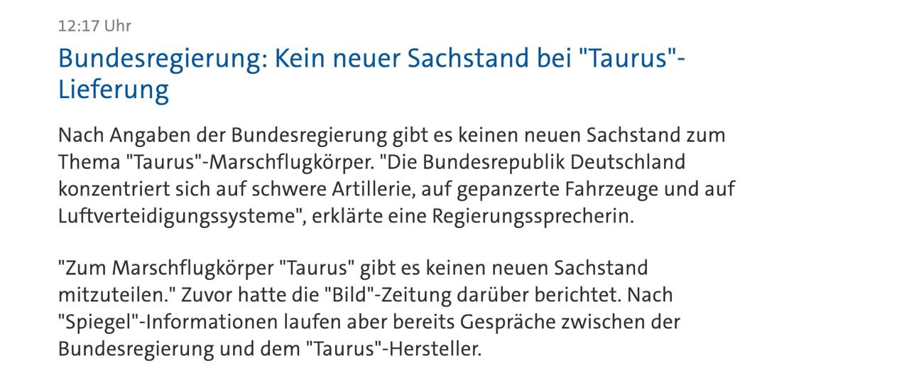Но немецкий портал t-online вчера написал, что передача этих ракет Украине "кажется неизбежной".