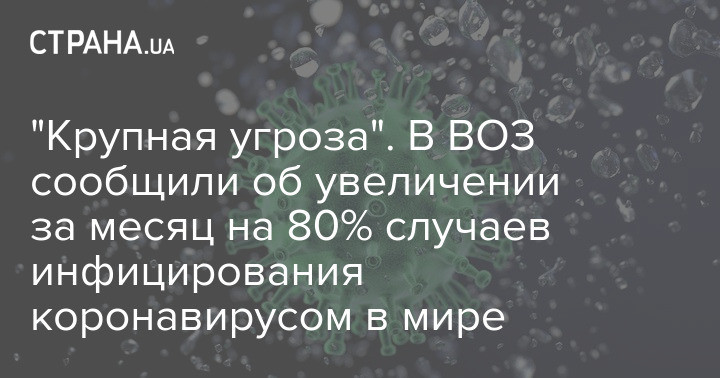 Число новых случаев заболеваний COVID-19 в мире выросло на 80% за последний месяц.
