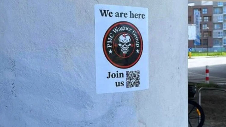 В Кракова местные жители обнаружили плакаты с российской ЧВК "Вагнер" на улицах города. На них размещены контактные данные ЧВК.