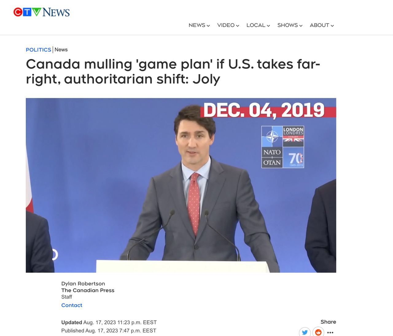 Правительство Канады прорабатывает сценарии действий в связи с возможным приходом к власти в США в следующем году ультраправых.