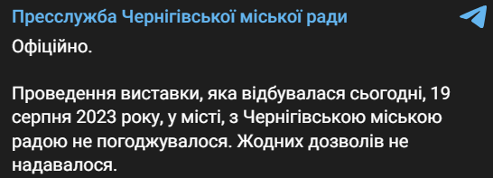 В Черниговском городском совете утверждают, что не согласовывали проведение сегодняшней выставки и не давали никаких разрешений.