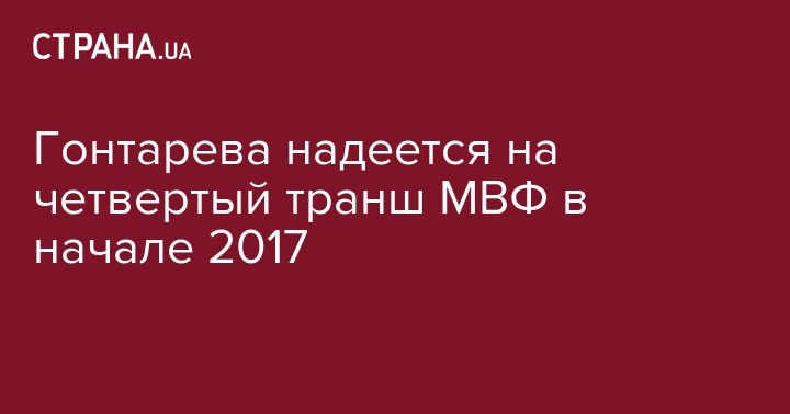 Гонтарева надеется на четвертый транш МВФ в начале 2017