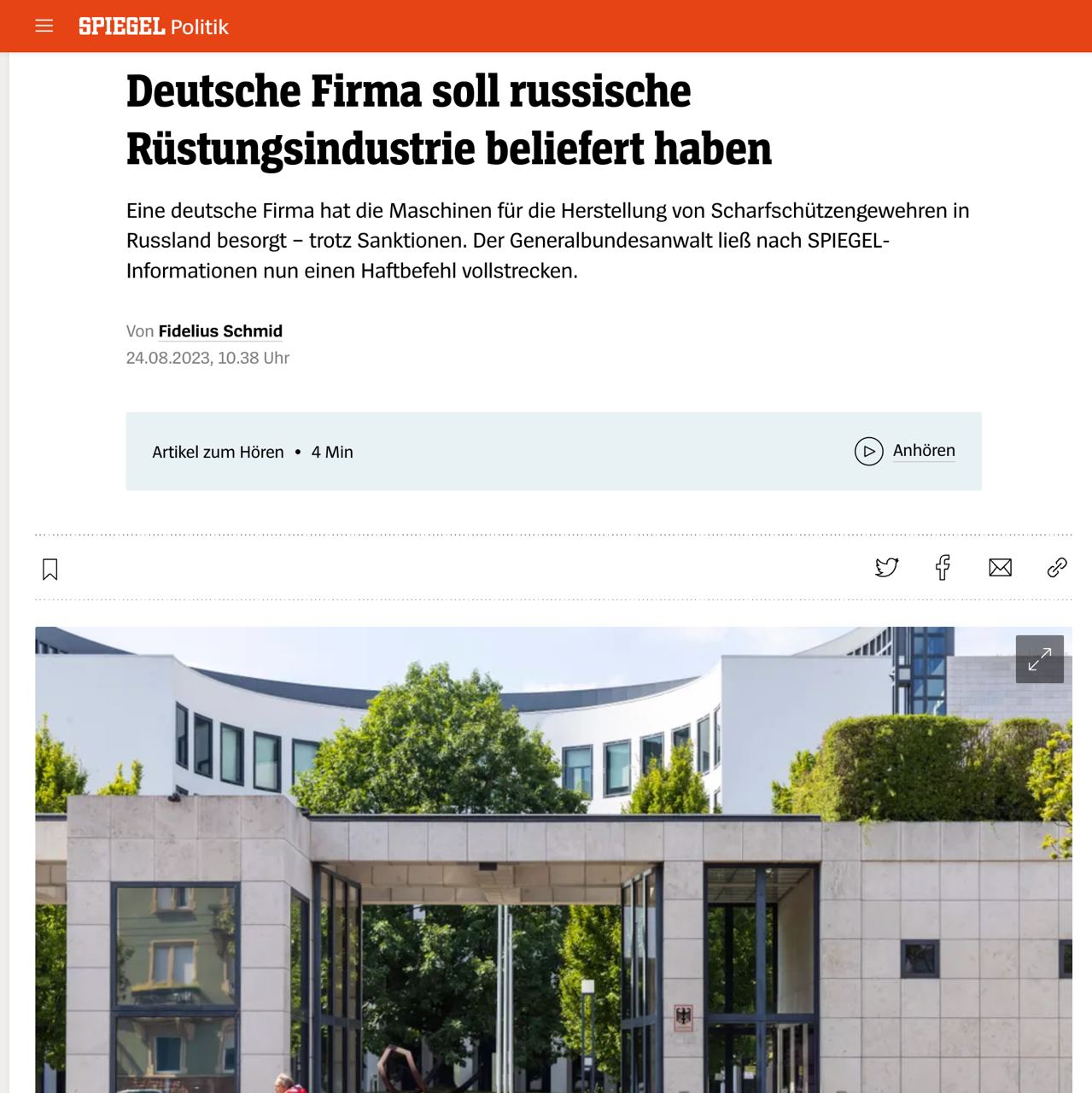 14.59 Немецкая компания поставляла в РФ станки для производства снайперских винтовок, заявляет Der Spiegel со ссылкой на источники.