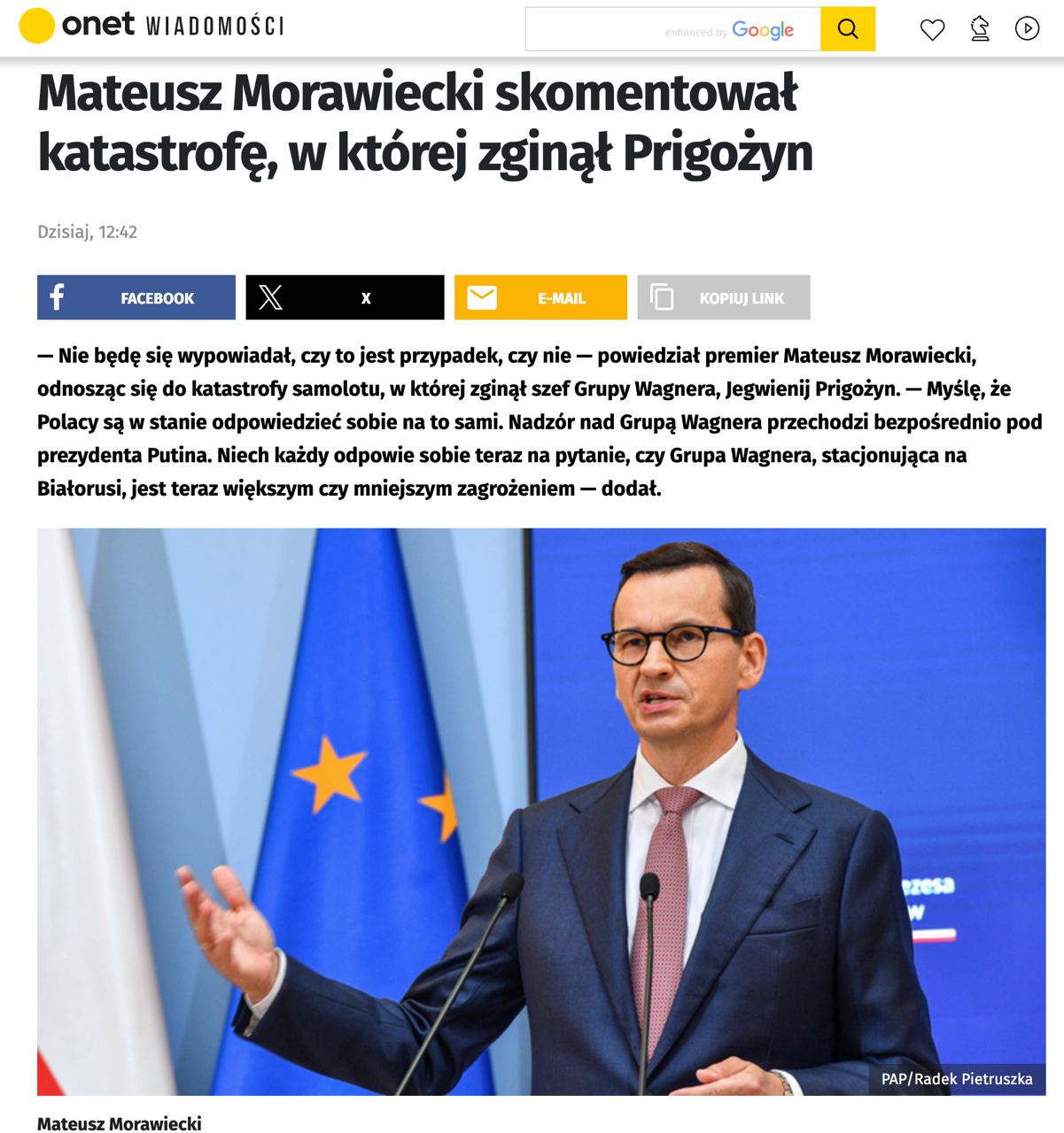 Моравецкий сделал заявление о "Вагнере". Фото: Фейсбук