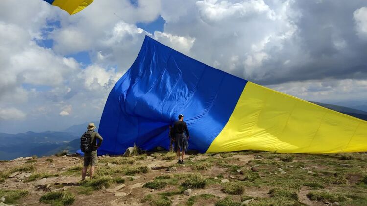 В День независимости Украины мариупольская учительница подняла государственный флаг над Говерлой и установила новый рекорд по поднятию крупнейшего флага Украины воздушным змеем на вершине горы.