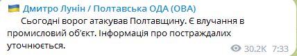 09.15 Подробности ночной ракетной атаки по предприятию в Полтавской области сообщает глава ОП Ермак.