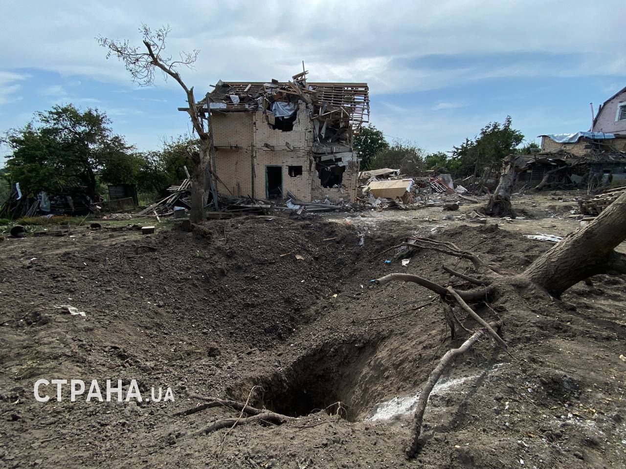 В доме, который получил наибольшие повреждения, на момент удара находилось два человека. Обломки упали буквально в нескольких метрах от строения.