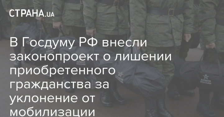 В Госдуму РФ внесли законопроект о лишении приобретенного российского гражданства за уклонение от постановки на воинский учет и мобилизации.
