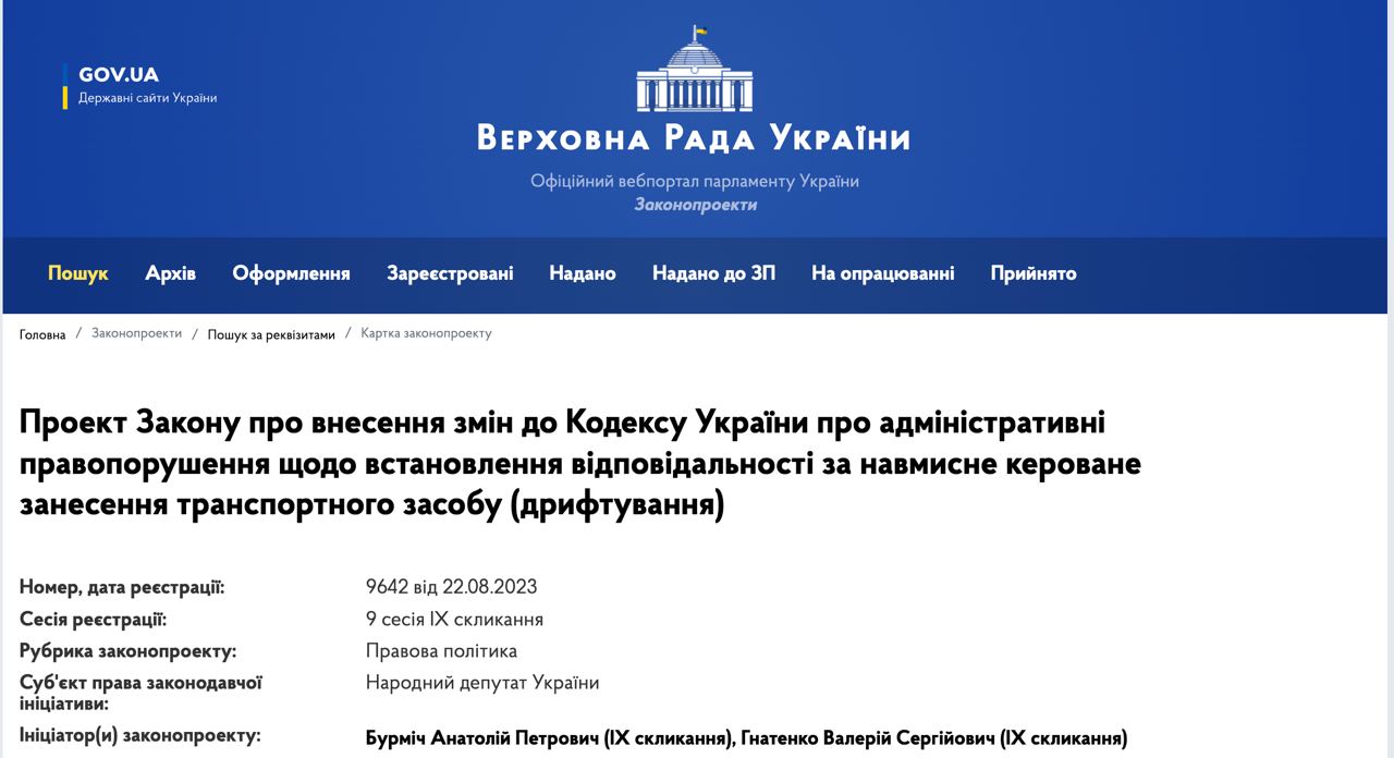 В Верховной Раде зарегистрировали законопроект, предлагающий ввести штрафы за дрифт. Зарегистрировали документ два депутата от запрещенной ОПЗЖ и Видродження.