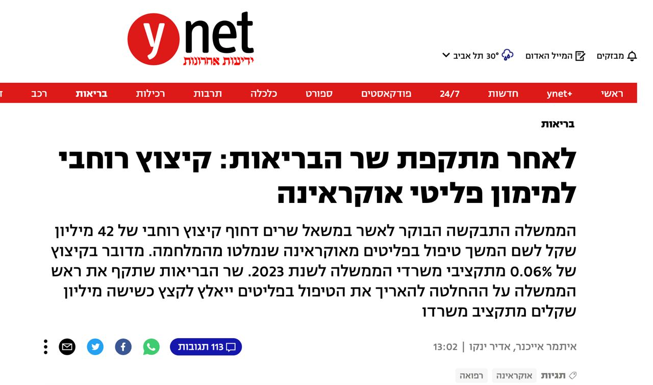 Напомним, в начале августа стало известно, что Израиль прекращает финансирование бесплатной медицинской страховки для украинских беженцев.