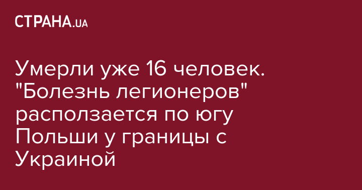 Умерли уже 16 человек. "Болезнь легионеров" расползается по югу Польши у границы с Украиной