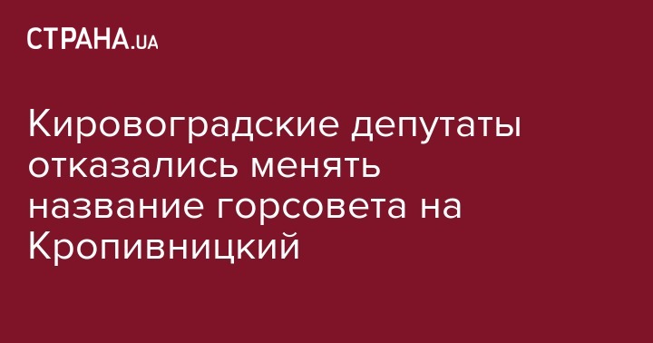 В четверг, 8 декабря депутаты пока еще Кировоградского городского совета не поддержали переименования своего места работы в Кропивницкий горсовет. Об этом сообщает 112 Украина.