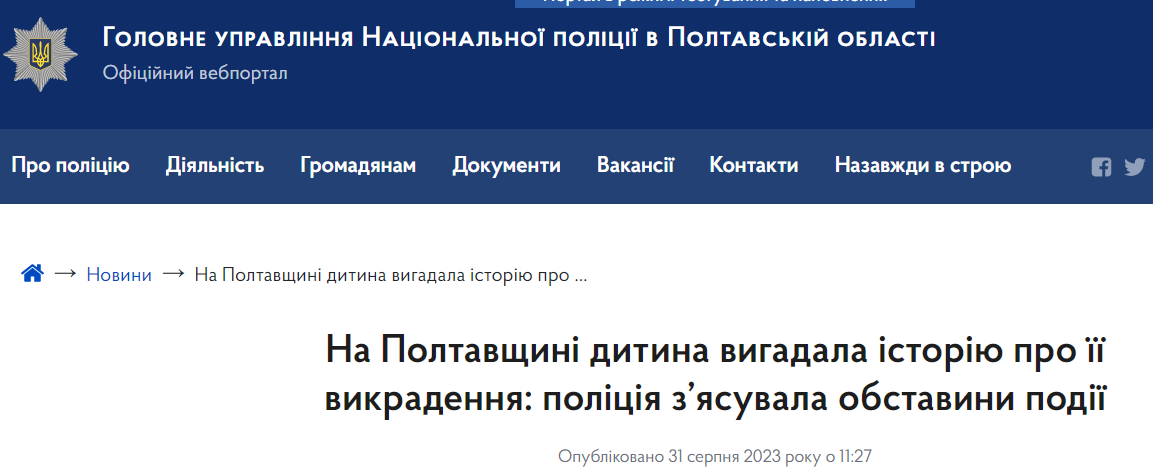 В Полтавской области шестилетняя девочка придумала историю своего похищения, чтобы увидеть учительницу.