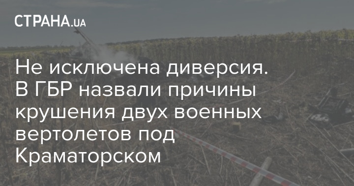 В Государственном бюро расследований (ГБР) назвали возможные причины крушения двух вертолетов под Краматорском. По мнению ведомства, одной из причин авиакатастрофы может быть диверсия.