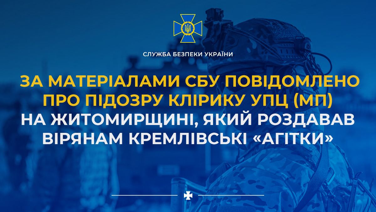 "Раздавал кремлевские агитки". СБУ сообщило о подозрении клирику УПЦ (МП) в Житомирской области