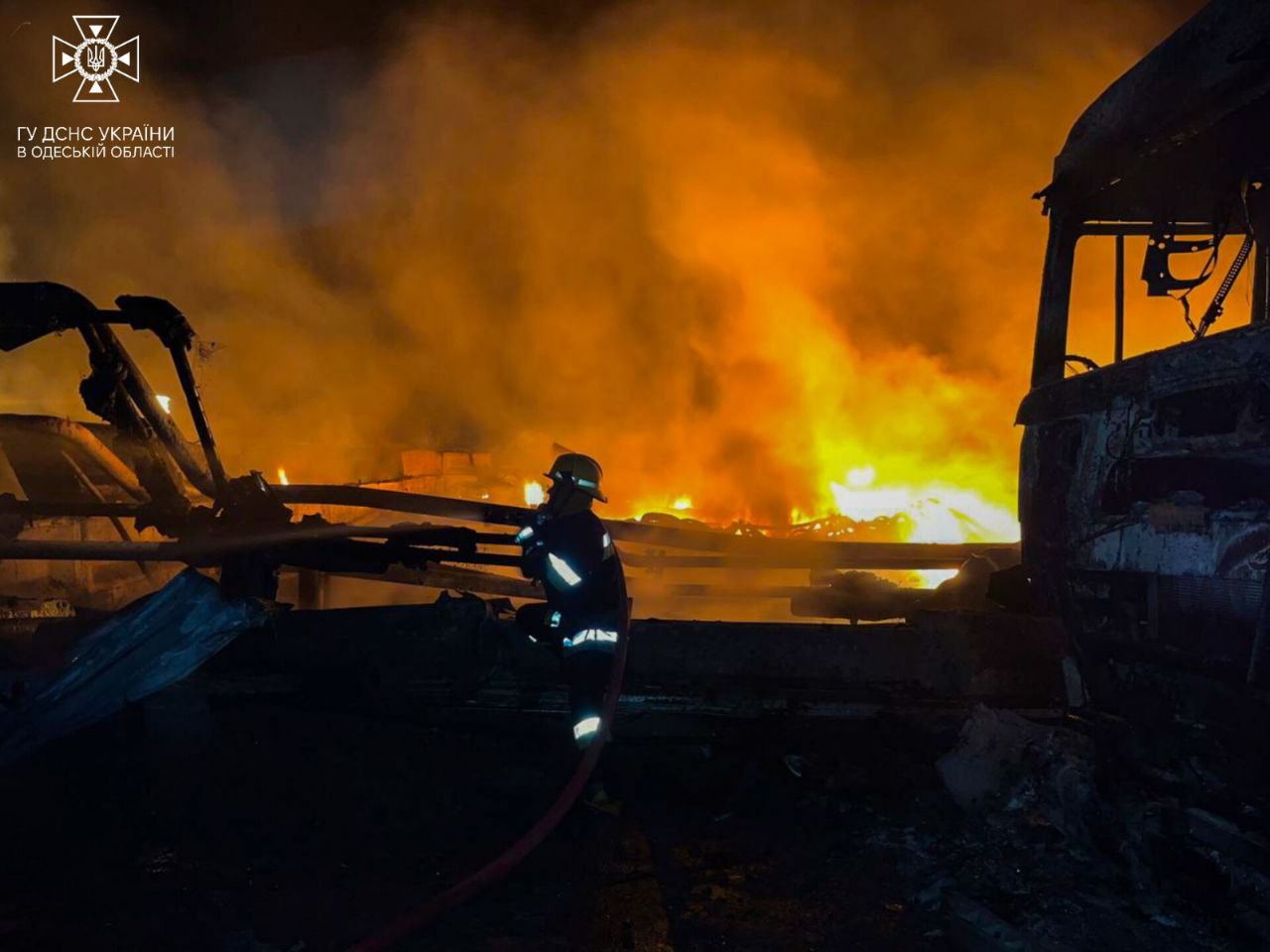Российские войска атаковали "Шахедами" припортовую инфраструктуру в Одесской области. В ГСЧС показали фото ликвидации пожара после налёта БПЛА.