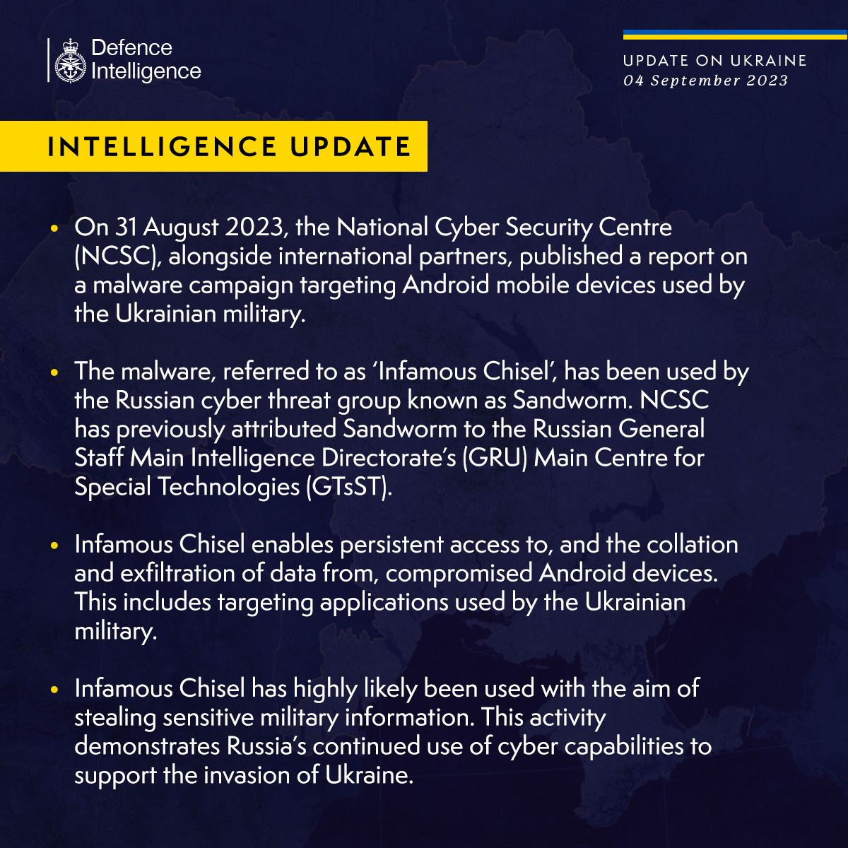 Британская разведка предупреждает украинских военных со смартфонами на Android, что РФ запустила вирус с целью кражи военной информации.