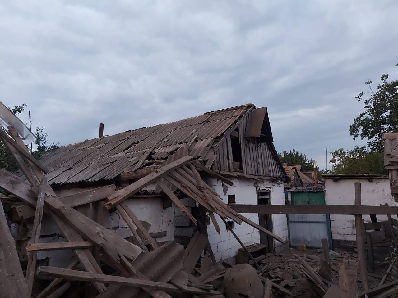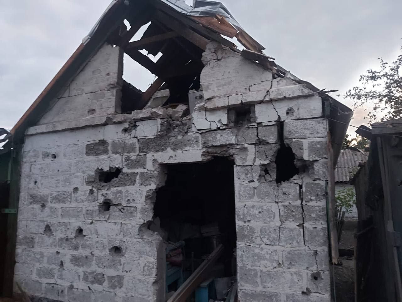 Один снаряд из "Урагана" попал прямо в частный дом, уничтожив его. Еще два дома повреждены. Также горела хозяйственная постройка, разбитый мотоцикл.