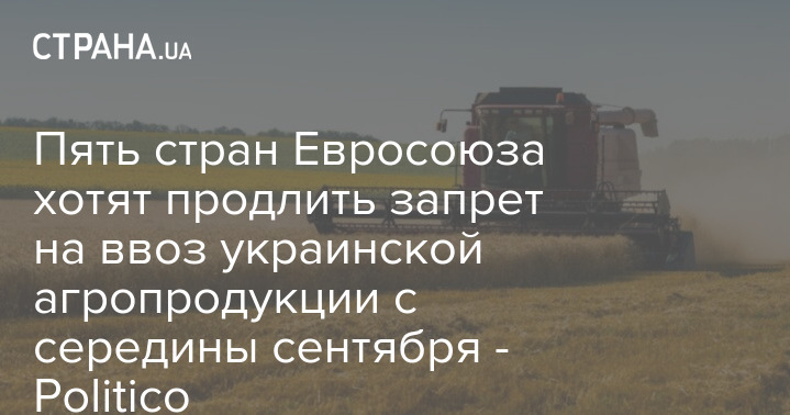 Польша, Венгрия, Румыния, Болгария и Словакия намерены продлить запрет на импорт украинской агропродукции после 15 сентября, несмотря на позицию Евросоюза, остальные страны которого выступают против.