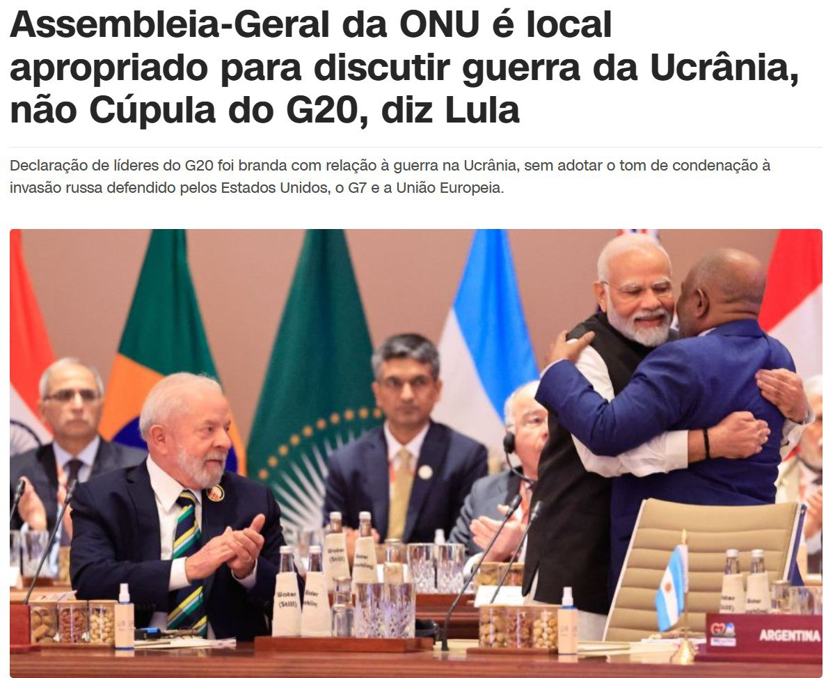 Президент Бразилии Лула да Сильва считает, что для обсуждения войны в Украине уместным местом является Генеральная Ассамблея Организации Объединенных Наций, а не саммит G20.