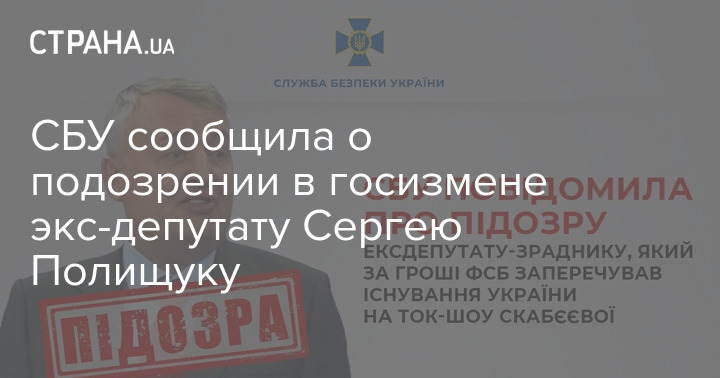 СБУ сообщила о подозрении в госизмене экс-депутату от "Блока Юлии Тимошенко" Сергею Полищуку.