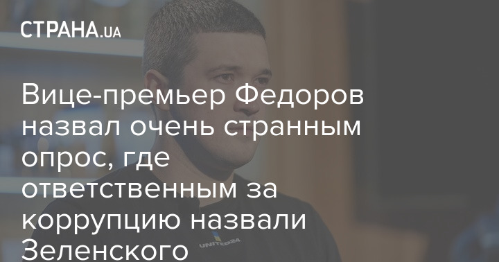 Вице-премьер Украины Михаил Федоров назвал "очень странными" результаты опроса, согласно которому 78% украинцев возлагают ответственность за коррупцию в стране на президента. По его словам, это похоже на целенаправленную атаку.