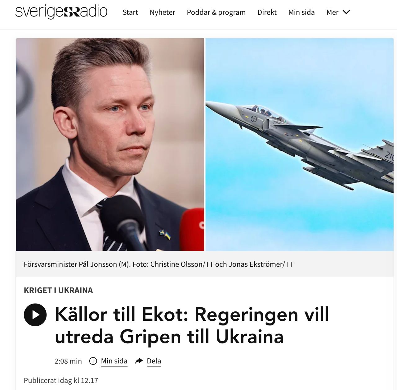 Власти Швеции попросят своих военных изучить возможность передачи Украине истребителей Gripen.