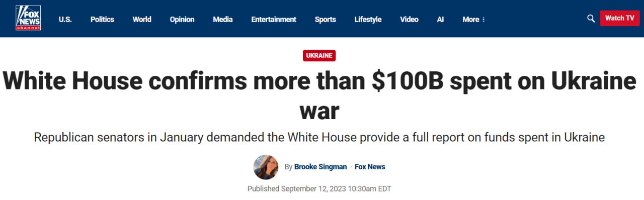 США потратили на украинский конфликт свыше 100 миллиардов долларов.