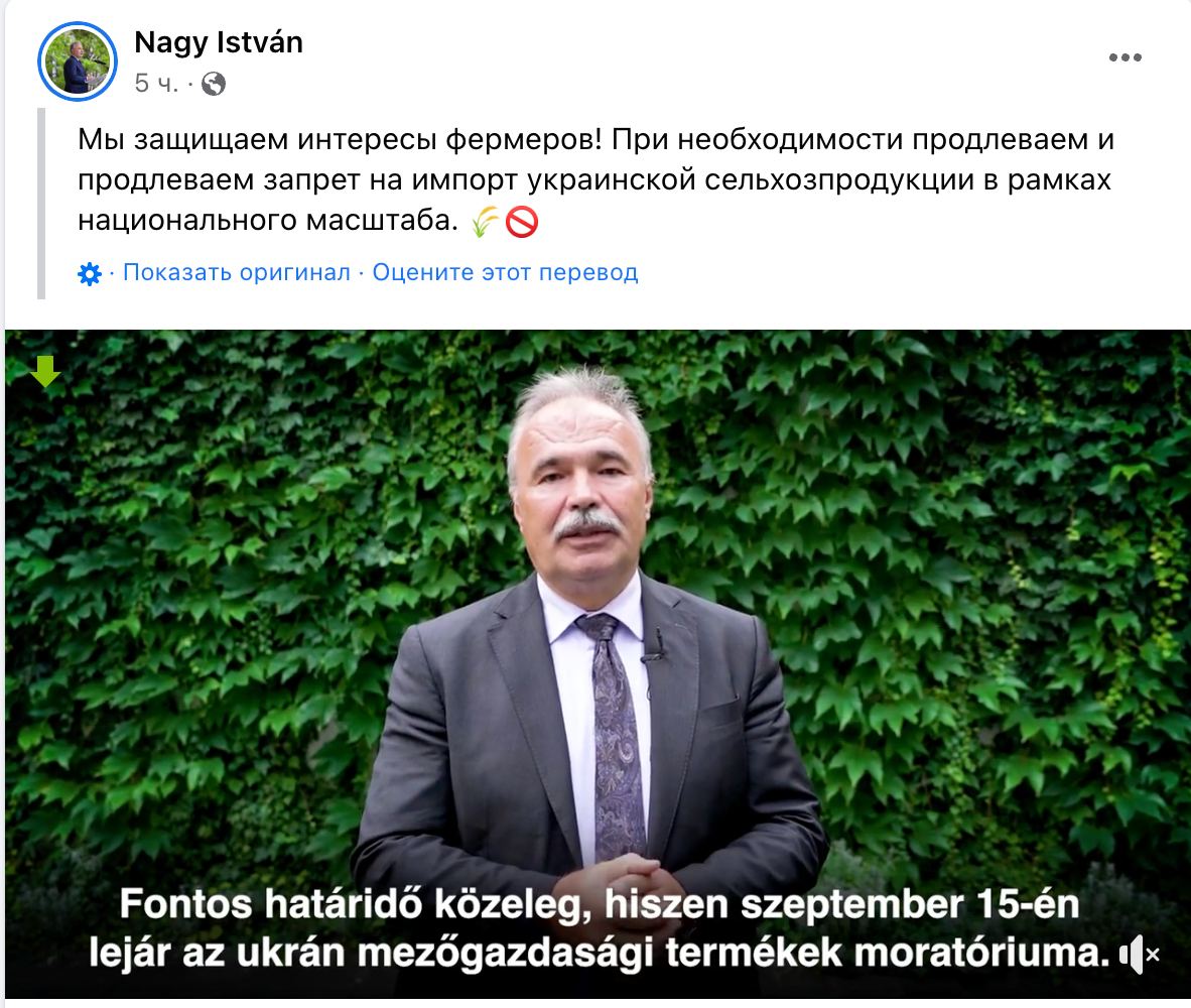 Венгрия продолжит и расширит запрет на украинскую сельхозпродукцию. Фото: Facebook